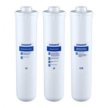 Комплект модулей сменных фильтрующих Аквафор К5-К2-К7М подходит для фильтра Аквафор DWM-101S Морион и используется для очистки холодной воды.