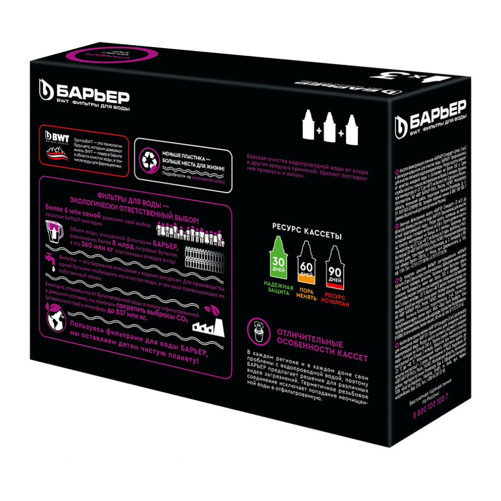 Комплект картриджей Барьер 4 Стандарт (3 шт.) - официальная гарантия производителя: мес.