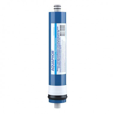 Используется в стационарных обратноосмотических системах АКВАФОР с отдельным краном. Вода под давлением проходит сквозь мембрану и освобождается от всех вредных примесей, в том числе бактерий и вирусов, нитритов и нитратов, а также солей жесткости.